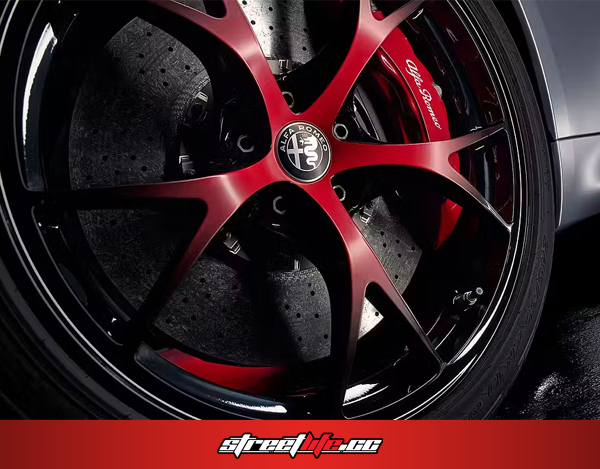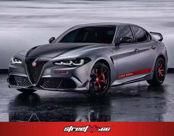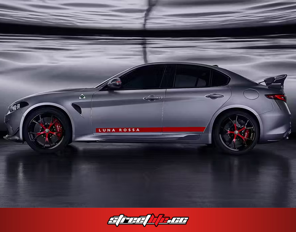 Auch die Markenlogos von Alfa Romeo an Front und Heck wurden speziell für dieses Sondermodell modifiziert und verfügen erstmals über einen roten Hintergrund. Die 19-Zoll-Leichtmetallräder sind ebenfalls in Rot lackiert. Dach, Markenemblem an der Fahrzeugfront sowie die Spiegelkappen bestehen aus sichtbarem Kohlefaserwerkstoff.